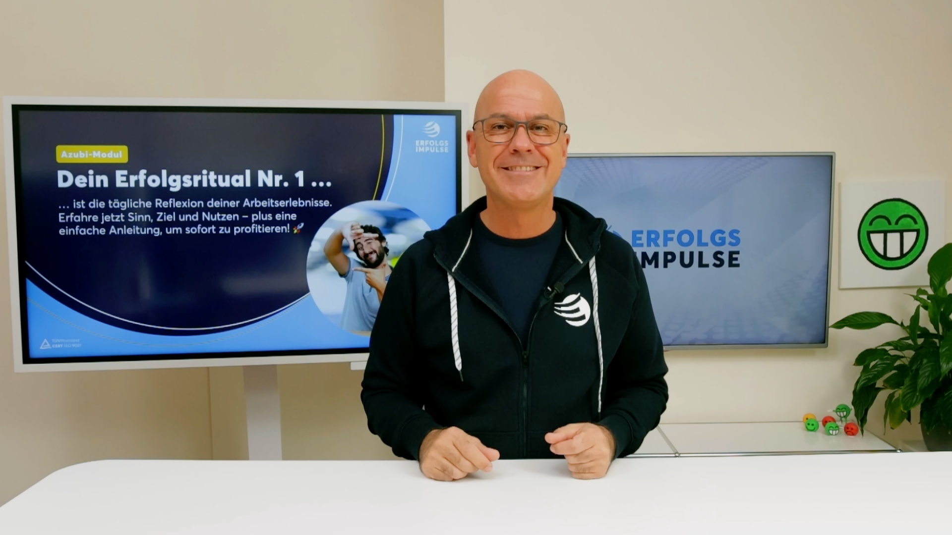 Das Premium-Modul „Selbstreflexion – Dein Erfolgsritual Nr. 1“ macht aus Erfahrungen echten Lernfortschritt. Azubis lernen, bewusst zu reflektieren, Erfolge sichtbar zu machen und Verantwortung für ihre Entwicklung zu übernehmen.